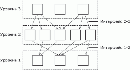 Такая иерархическая декомпозиция задачи предполагает четкое определение функции каждого уровня и интерфейсов между уровнями. Интерфейс определяет набор функций, которые нижележащий уровень предоставляет вышележащему.