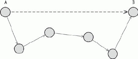Рис. 11.3. Декомпозиция задачи связывания произвольной пары узлов на более частные задачи связывания пар соседних узлов.